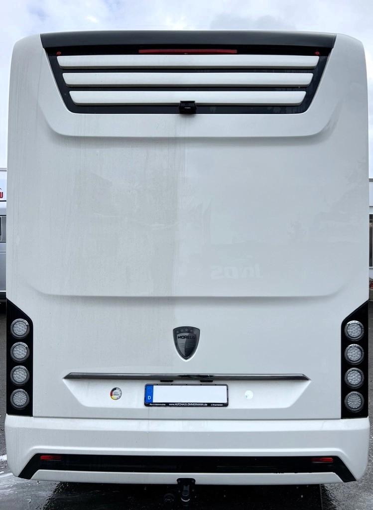 Heck eines Wohnmobils mit versiegelter Fläche rechts und unbehandelter Fläche links - Camperforyou Keramikversiegelung